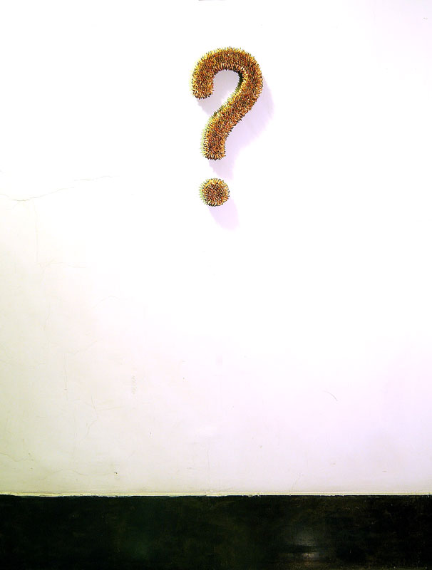 Con un linguaggio essenziale e ironico, l’artista invita l’osservatore a confrontarsi con il dubbio come dimensione comune dell’esperienza umana. Il punto interrogativo è al tempo stesso un simbolo ludico e una riflessione esistenziale, un’icona che sintetizza, con leggerezza e profondità, la condizione del pensare e del vivere contemporaneo. Un segno che strizza l’ occhio alla condizione umana — fragile, curiosa, incerta — e invita chi osserva a riconoscersi in quell’interrogativo collettivo. Un sorriso, forse, ma anche uno specchio.