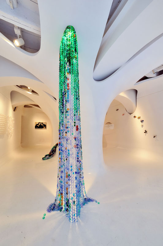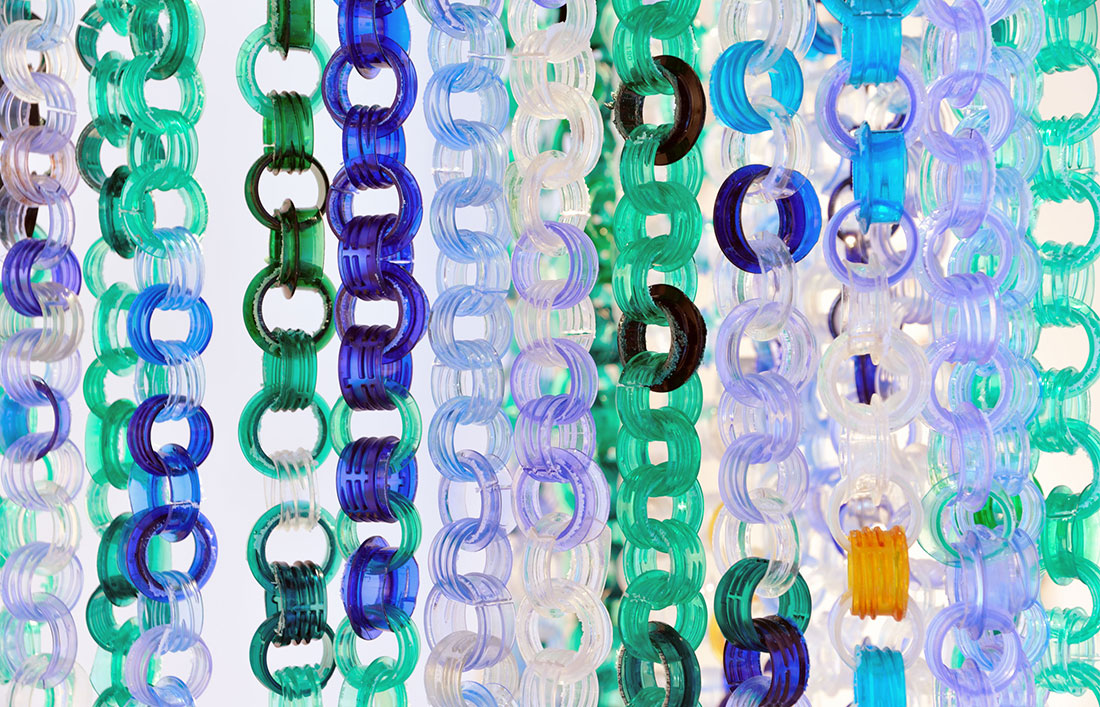 Frutto di cinque anni di raccolta, l’opera è composta da colli di bottiglie di plastica inanellati uno a uno per formare una colonna trasparente, concepita appositamente per lo spazio Ex Elettrofonica. La ripetizione del gesto — raccogliere, conservare, assemblare — trasforma un materiale di scarto in forma e memoria, , testimoniando come l’atto del riuso possa farsi gesto e riflessione sul valore della trasformazione. La colonna, slanciata e fragile, sembra sospesa tra presenza e assenza.